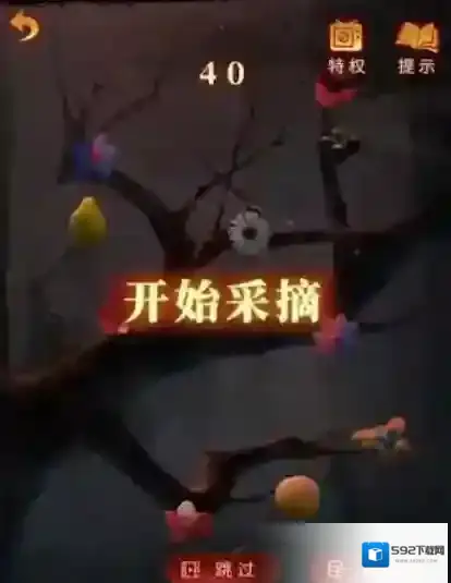 24、按照:硬壳水果→瓜果→辛辣之物→黄汁水果→浆果的顺序来点击即可完成小游戏,拾取水果后再拾取树上的剪刀;