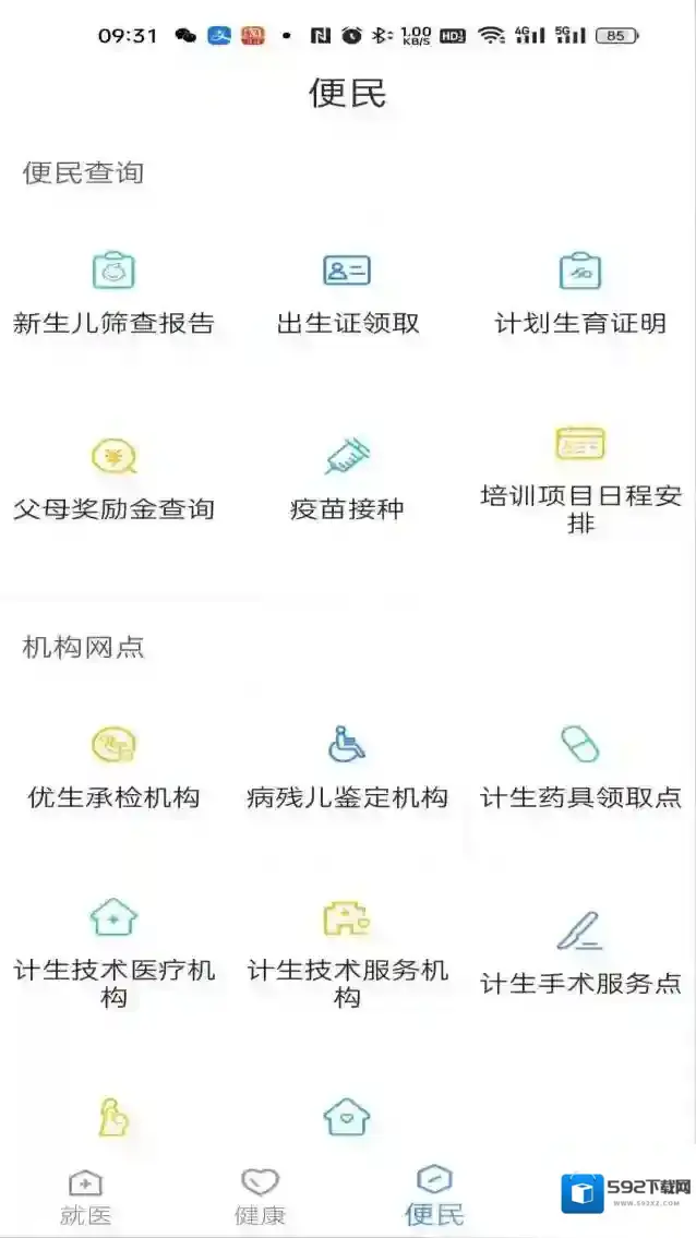 3、便民页面,使用新生儿筛查报告、疫苗接种等便民查询服务。