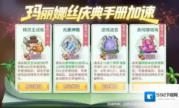 5、10月15日更新后~11月3日 5:00期间,通关副本目标任务,即可领取手册经验,助力加速升级更畅快。