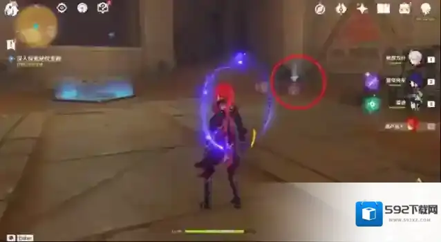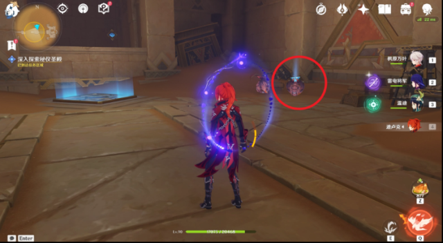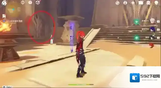 21、走到底,会有房间出现。在草神瞳右方可以看到元能光锥。使用四叶印接近。