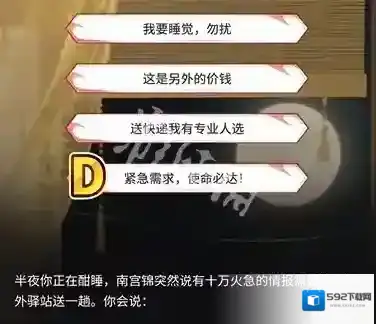 选择C(只想为教主分忧)和D(只想为南宫大人分忧)都可以
