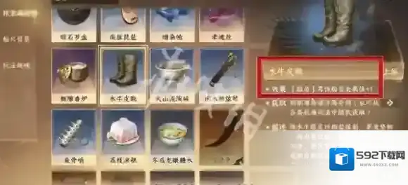 3、来到东南海域(907,1603),对话获取水牛皮靴,可使男性船员全属性加1。