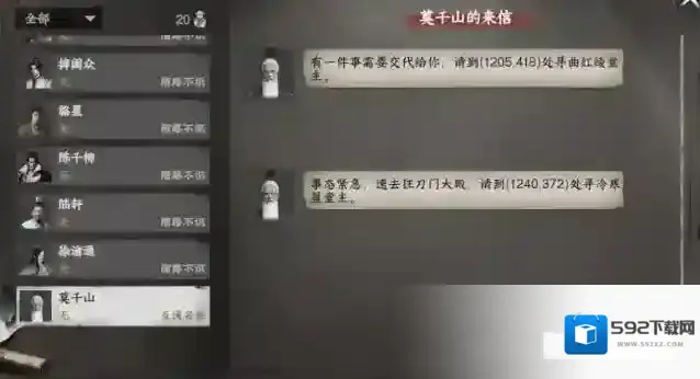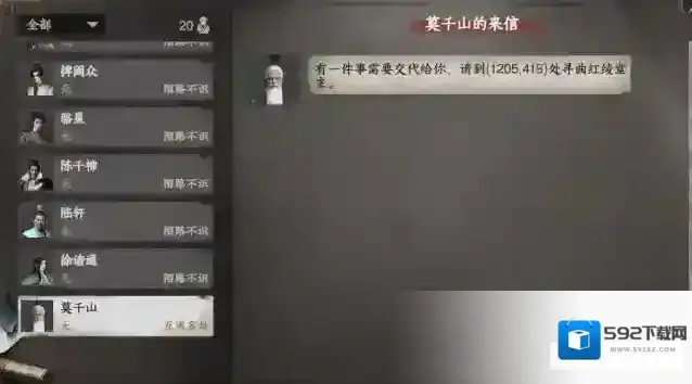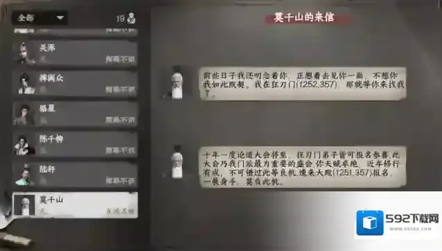 做悬赏任务将门派好感提升到25时收到莫千山飞鸽