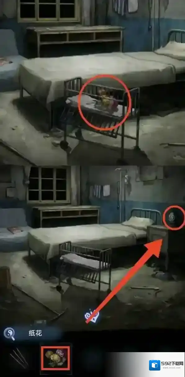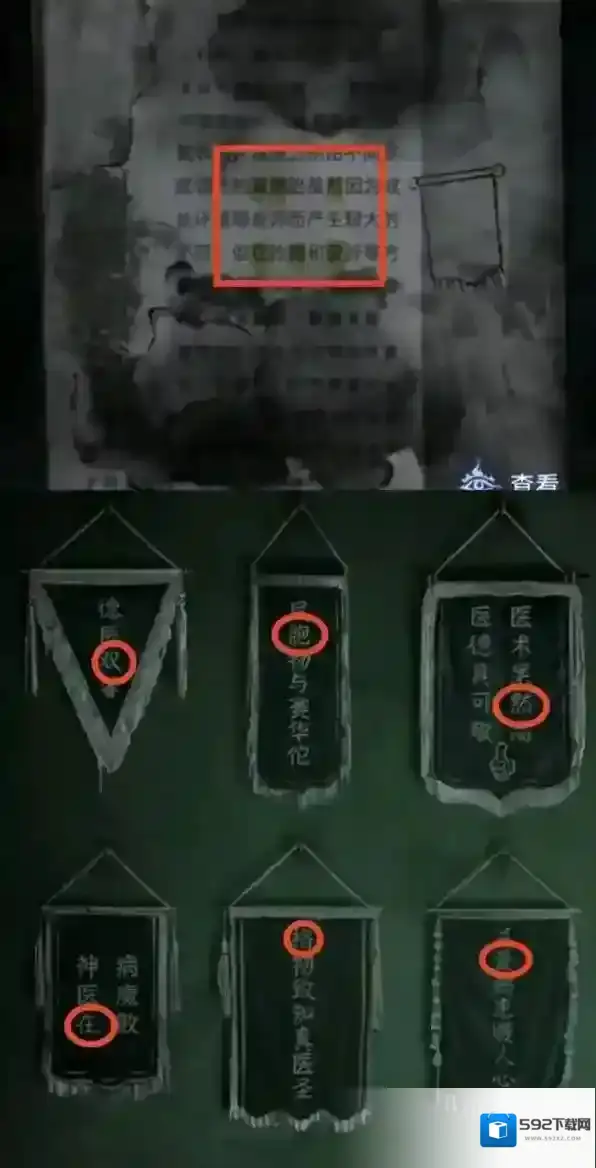 纸嫁衣8千子树第一章夜盲谜题怎么解,医院右边椅子收音机底下有张凭条,拿凭条去自助机打印,获得第一个房间的密码58339。根据窗上的线索,打开左侧柜子,获得剪纸小人和锦旗。去到楼梯,把剪纸小人放到逃生通道图案上,上二楼。