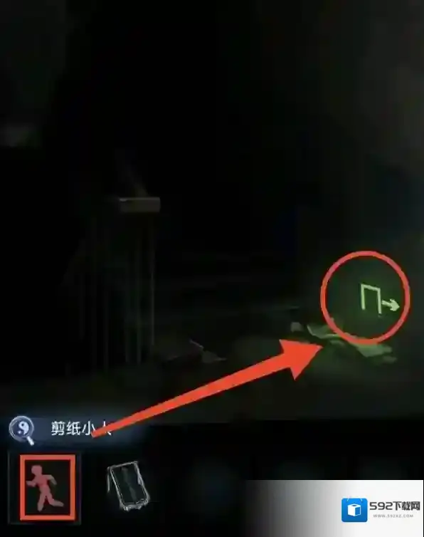 3、去到楼梯,把剪纸小人放到逃生通道图案上,上二楼。