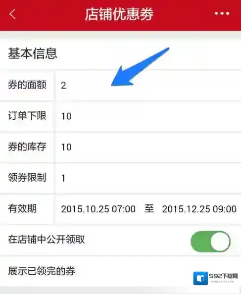 此时我们需要在微店的店铺优惠券中设置优惠券的面额、订单下限、库存以及限制等等。