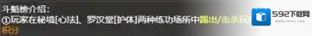 玩家在心法秘境,罗汉堂踢出/击杀玩家可以获得斗魁积分,斗魁积分将在斗魁榜进行排名展示。