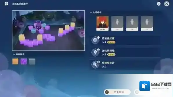 选择火元素角色,和雷方块发生爆裂反应:对一定范围内的方块造成伤害。