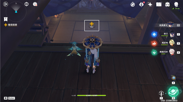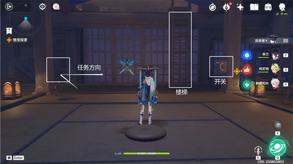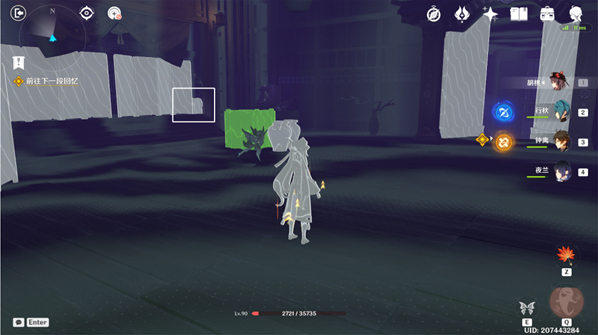 往地图的西北方向看,开启元素视野,按图中指引,获得宝箱③,往地图的北方向走,前往任务指引房间