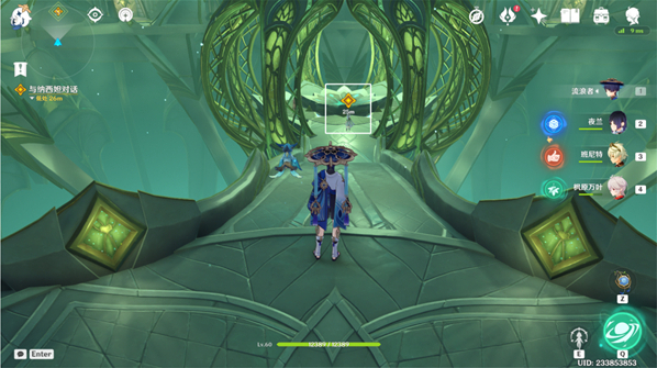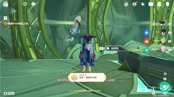 进入净善宫,往地图的北方向走,与纳西妲对话