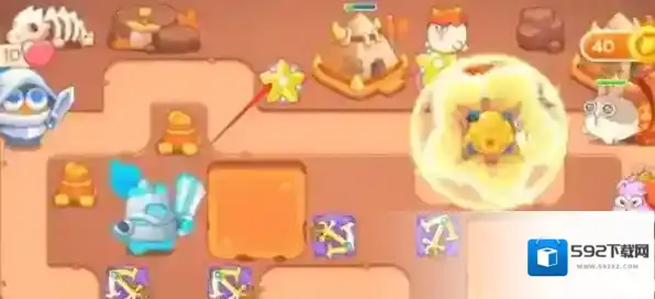 6.放置星星塔并升级,下一波会有很多的飞行兔子。