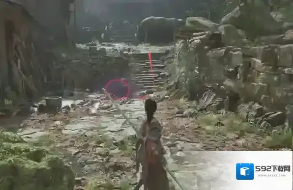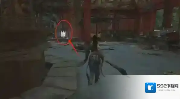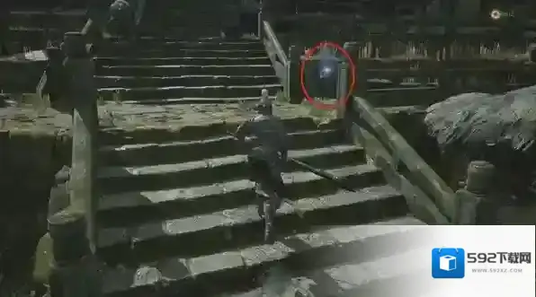 左转回到路口处往前走到最里面,右拐击败红眼明军获得明军套装(如果状态不好,可以绕开他先往前跑去找神龛)明军身后这层楼梯右拐可以获取一个生长的赤汞*1,