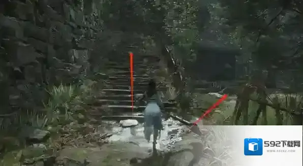 其实,你可以沿着最右侧的箭头往里走,这条路通向一个小区域,连接蜀王祠的侧门。不过,由于路途遥远且危险,容易导致死亡,所以暂时不建议探索。优先走正门,前往蜀王祠神龛。
