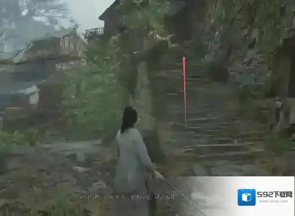 接着,重新回到台阶处往左走。路上能听见说书人在讲故事。向前奔跑时,可以看到地面上钻出竹笋精。快速锁定并击杀它,收集竹笋*1。