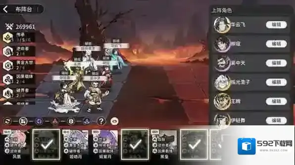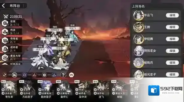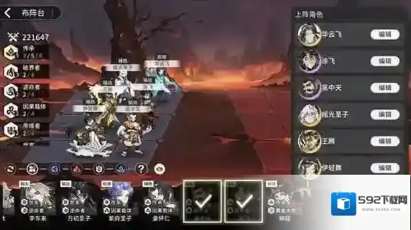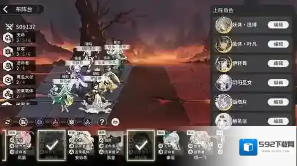 ②世家阵容:养成比较难,3个SR都吃星,缺少AOE吃SSR群攻技能书,偏向PVP,2个前排很肉