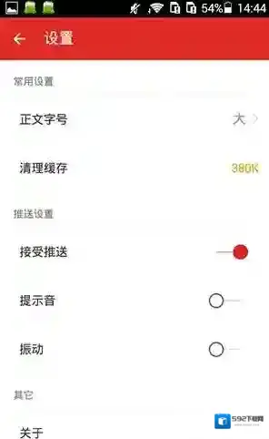 3、在设置界面中,大家可以在常用设置中看到正文字号这个功能,以及默认情况下阅读字体显示的大小,点击正文字号这个功能,如下图。