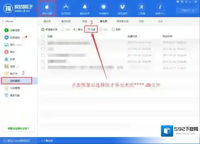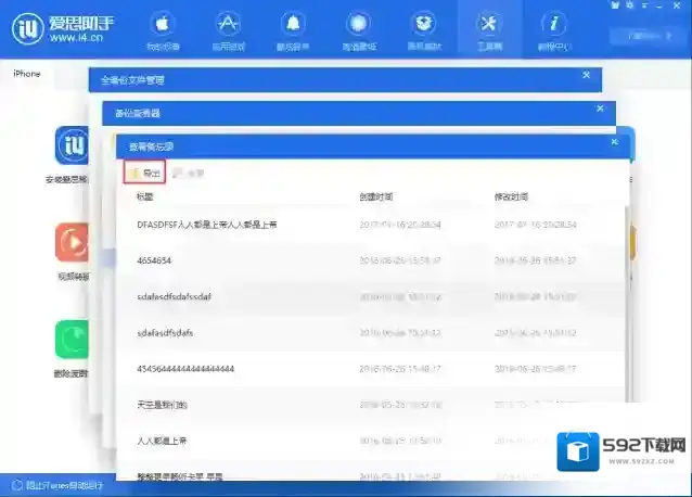 6、导出的文件可以通过爱思助手“资料管理”,单独将备忘录恢复到设备中。