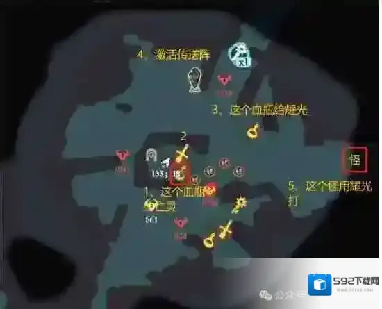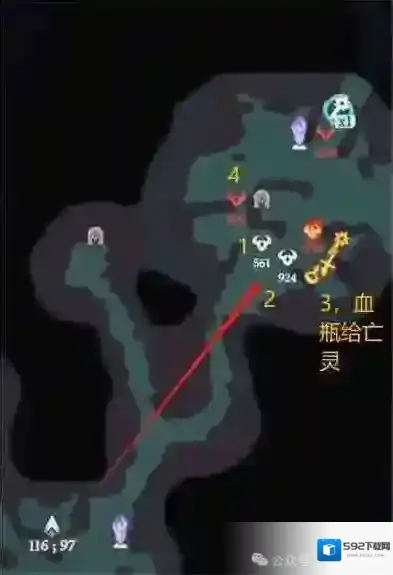 按下图的顺序清怪拿奖励,血瓶给亡灵