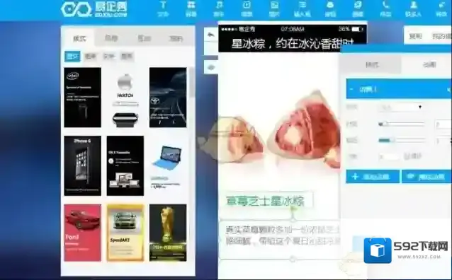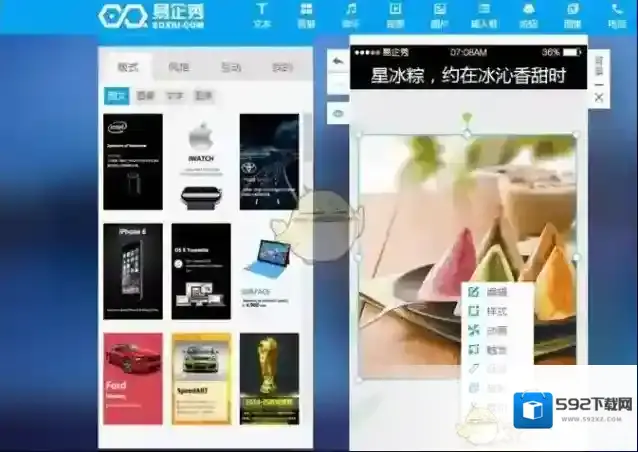 点击“创建”之后,进入编辑平台。左侧显示的是可以免费使用的素材,中间屏幕是编辑的主要对象,右侧是页码,页码可以更改顺序、删除或新增。
