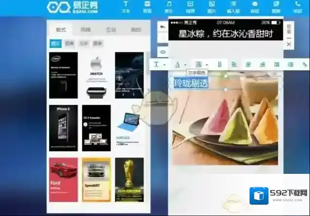 我们添加一个宣传标题。选择添加文字,在文字框内输入标题,可以在出现的工具框内调整颜色、大小、对齐方式等。然后将文字框拖到合适的位置。