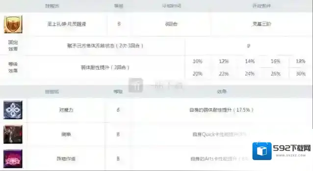 3.技能和宝具综合有加防,降暴,抵消职阶相性不利和次数无敌效果,有着很强的保护能力,可显著提升全队的生存能力。