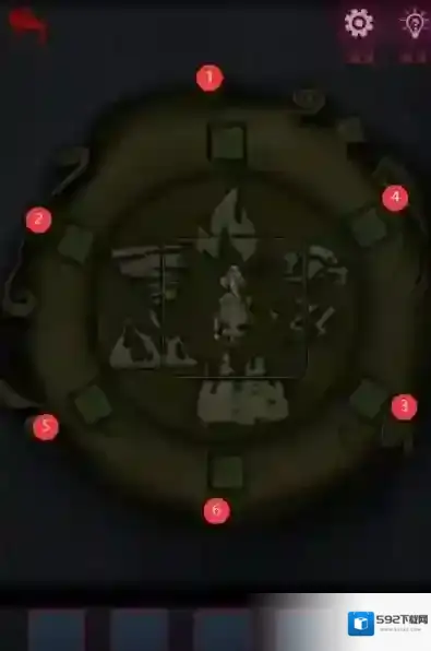 11、将青铜印放到下图位置,按照壁画提示的顺序点击按钮,打开贪的大门。