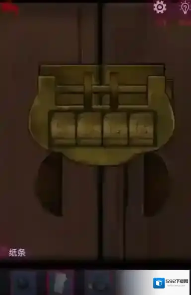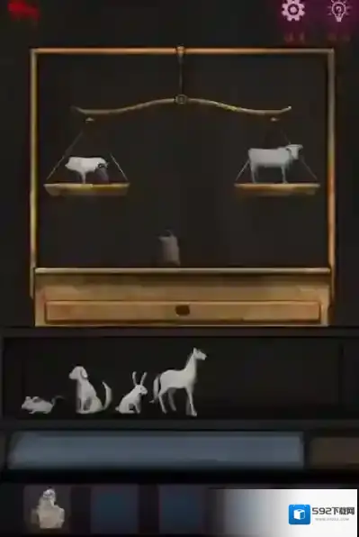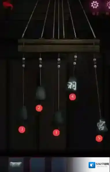 5、在桌上拿到秤砣五,桌角下左边拿到引火棒,桌角下右边拿到未点燃的灯笼,柜子锁密码是:储記信堵,打开获得摆件塔。