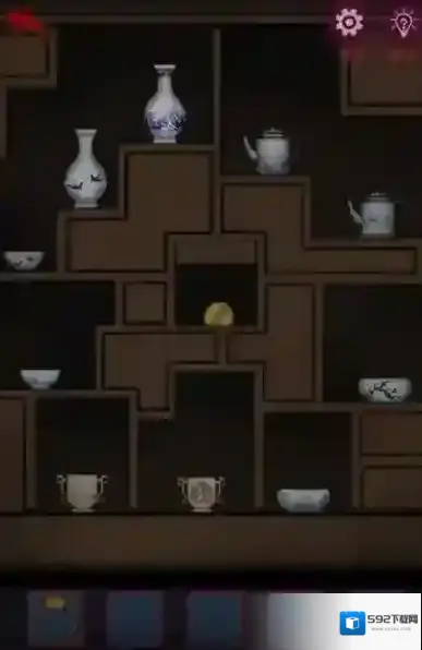 10、开启后,在桌上拿到瓷器,根据门上的画在墙上的砖块后输入密码,打开获得提示。
