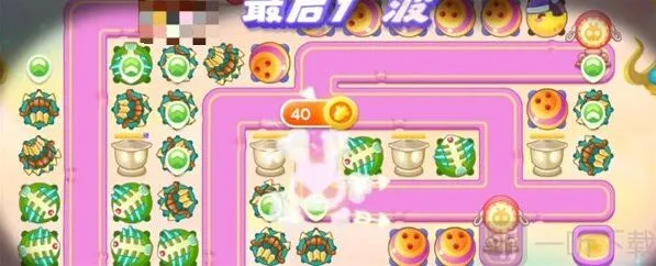 4、等第一波的兔子全部走完之后,锁定右上角的栅栏,打掉这个栅栏后补一个3级的保龄球;