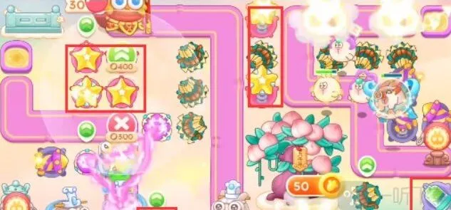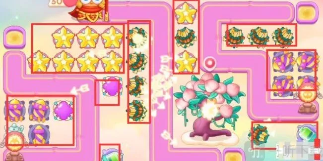 1、本关能够使用的炮塔是:毒针、魔法球、闪电炮、多重箭、导弹、星星,这一关我们要多做防空炮塔玩。