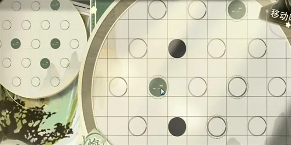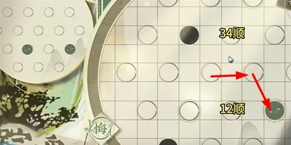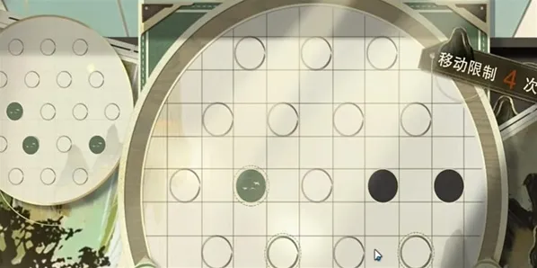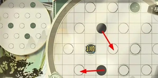 2、接着我们把左侧的棋子逆时针移动两格,右侧的棋子顺时针一格。