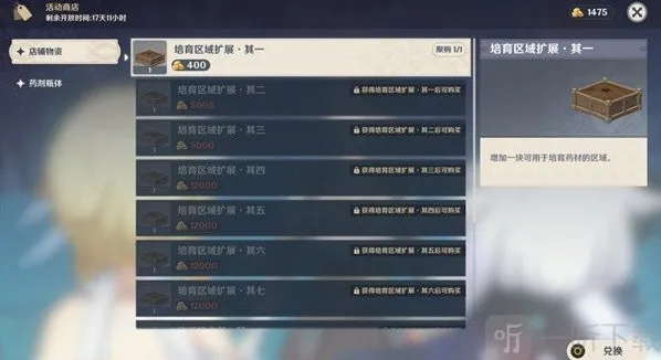跟着任务指引,培育药材,然后跟指引来NPC芙里达购买地,记得每周期培育前,先来看看地能不能买。