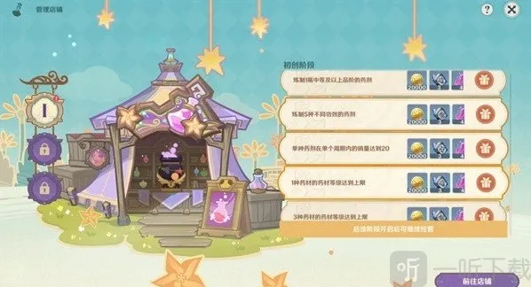 活动简介:活动期间,通过培育药材、炼制药剂、售卖药剂等玩法,不断为店铺获得营业收入,扩大经营规模。