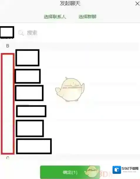 4、首先单击某好友头像发起会话,如果聊天列表没有该好友,可以搜索或者打开通讯录查找。