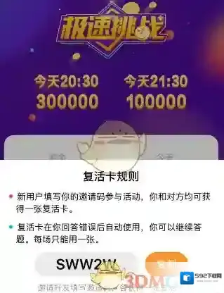 新用户填写你的邀请码参与活动,你和对方均可获得一张复活卡。