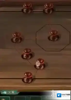 8、回到房间中倒入热水,放进茶宠得到提示,根据图案提示解开下图的盒子得到青花瓷球。