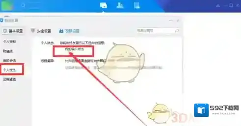 5.然后在左边菜单栏选择“个人状态”,如下图所示:
