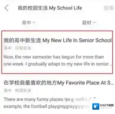 第六步我们看完万能句子和作文模板之后,再去搜索英语作文,会对英语作文水平有一个认知提高,直接在搜索框输入题目,点击搜索,会查到相关的英语作文,如下图所示: