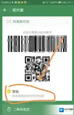 7、点选完零钱作为付款方式后,可以查看到零钱已经作为付款方式显示在二维码下方,如下图所示。