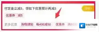 5、选择的购物津贴可以在明细里面看到,自己的购物津贴每一次都是多少的,而且在界面上可以看到,显示的目前都是满400减50的这个标准来进行减免的,不是说,自己买多少都可以用这个购物津贴的。