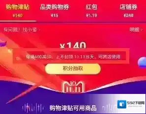 7、同时需要我们注意的就是,这个购物津贴显示的是跨门店可以使用的,也就是说不通的店铺之间都可以使用的,只要你的金额够了就可以,另外也要注意使用的时间,只有在11月11日当天才可以的。
