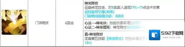 ps:由于游龙戏珠冷却4回合,该技能前置3回合,导致我们如果想打满游龙+神龙的combo,只能在第七回合才能打出来(第七回合人都死的差不多了),所以建议还是好了就用或是在第三回合使用,第四回合直接神龙降世。