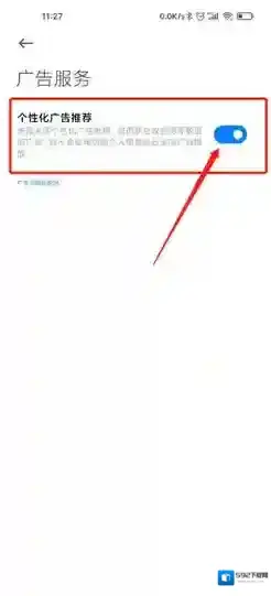5、可以看到当前自动开启的个性化广告推荐,点击右侧的滑块将其关闭即可,关闭个性化广告推荐右侧滑块。