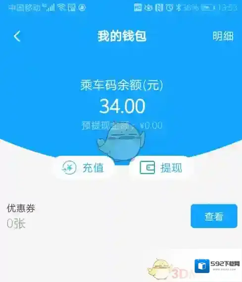 5、点击钱包界面的”明细“可以查看到自已的乘车记录,包括路线时间及金额。点击每行记录,可查看详细信息。