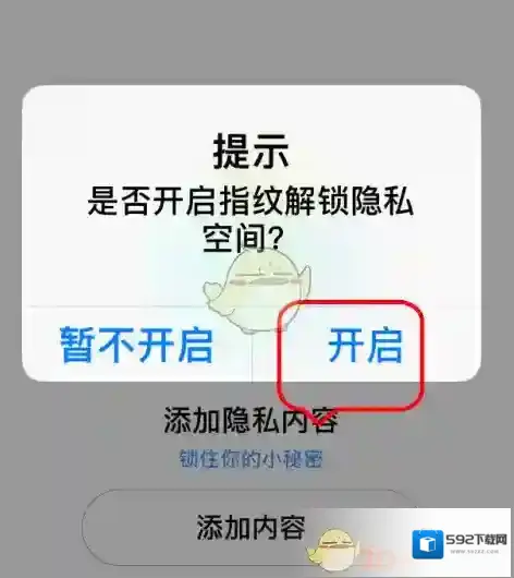 2、进入开启“隐私空间”界面。点击“隐私空间”–“开启隐私空间”,进入开启“隐私空间”设置界面。