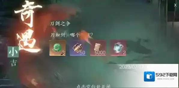 2、接着玩家需要与她对话,然后向她出示西域宝刀,之后继续对话,选框选择各有所长;