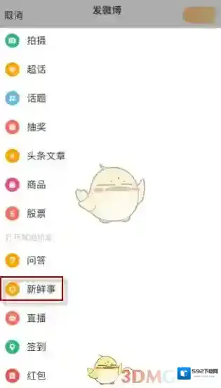 5、手机端自动默认创建无板块新鲜事,如想为新鲜事添加板块内容请移至电脑端。