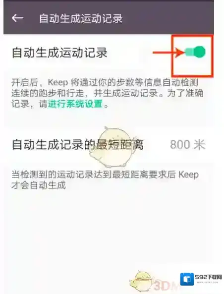 5、默认是自动生成运动记录,点击后面按钮变成灰色即可关闭。