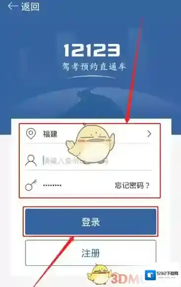 4、这边需要登录一下,选择自己驾考报名的省份,填写要查询的人身份证号和交管12123的密码