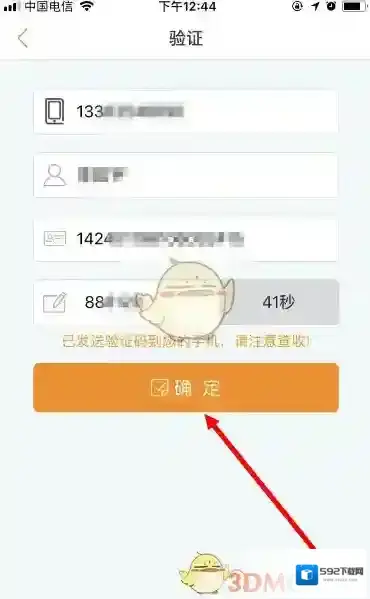 4、在验证页面,输入姓名 、身份证号码 ,并点击获取验证码 。手机号码是自动生成的。